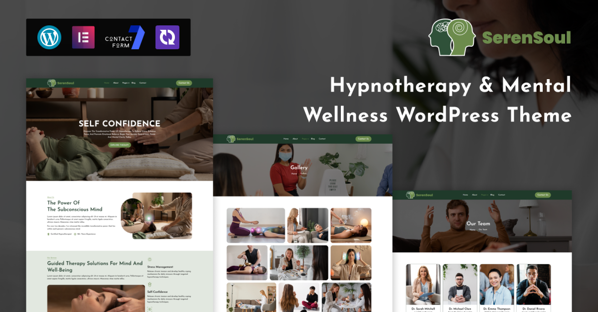 SerenSoul to nowoczesny, uspokajający i starannie zaprojektowany motyw WordPress przeznaczony dla hipnoterapeutów, psychologów, doradców, coachów życiowych i osób zajmujących się wellness. Oferuje on zrównoważone połączenie estetyki i funkcjonalności, pozwalając Ci stworzyć profesjonalną obecność online, która buduje zaufanie, komfort i emocjonalną więź z odbiorcami.