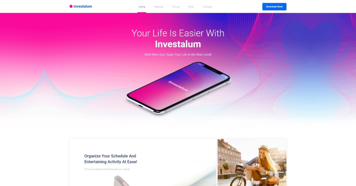 Znajdź najbardziej jasny i zapierający dech w piersiach projekt tego motywu specjalnie opracowanego dla witryny App. Dzięki Investalum WordPress Theme będziesz w stanie zbudować wysoce funkcjonalną stronę internetową poświęconą dowolnej aplikacji. Motyw został stworzony w oparciu o narzędzie do tworzenia stron Elementor i jest wyposażony w dużą liczbę wtyczek Jet Family. Wtyczka JetElements zawiera wiele modułów, które nie były dołączone do oryginalnego edytora Elementora. JetTabs, JetTricks i JetBlock urozmaicą Twoją witrynę o atrakcyjnie wyglądające i potężne elementy oraz efekty wizualne. Wtyczka JetBlog pomoże Ci wyświetlać Twojego bloga w najlepszy sposób i wzbogacić go o niesamowite funkcje. Ponadto Investalum jest wyposażony we wspaniałą wtyczkę JetThemeCore, która umożliwia tworzenie nagłówków, stopek, sekcji i całych stron z gotowymi sekcjami. Motyw Investalum solidna funkcjonalność i duża liczba elementów są na celu i doskonale odpowiadają potrzebom użytkowników!