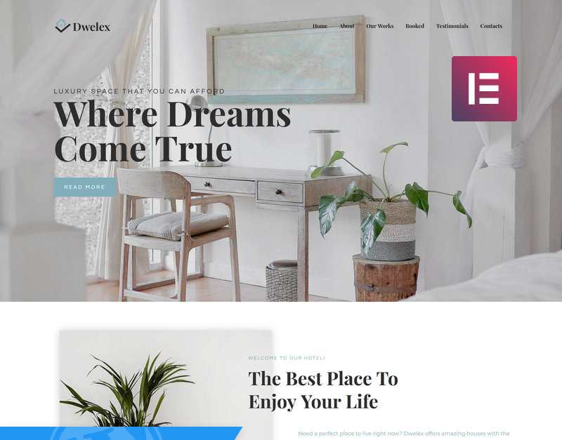 Dwelex - Real Estate One Page Nowoczesny motyw WordPress Elementor