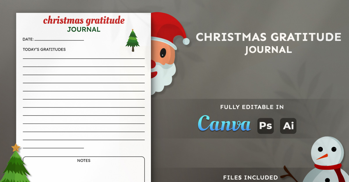 Christmas Gratitude Journal | Editable Holiday Planner Template for Canva & KDP