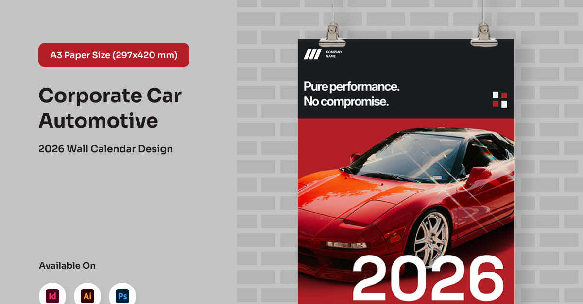 This Wall Calendar design merges sophistication and speed with its sleek layout and editorial-style photo focus. Ideal for showcasing high-end cars or automotive events, it delivers a bold visual statement that blends elegance with performance aesthetics.