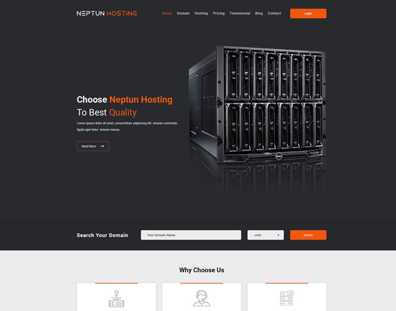 Neptun Hosting - One Page Hosting PSD Template