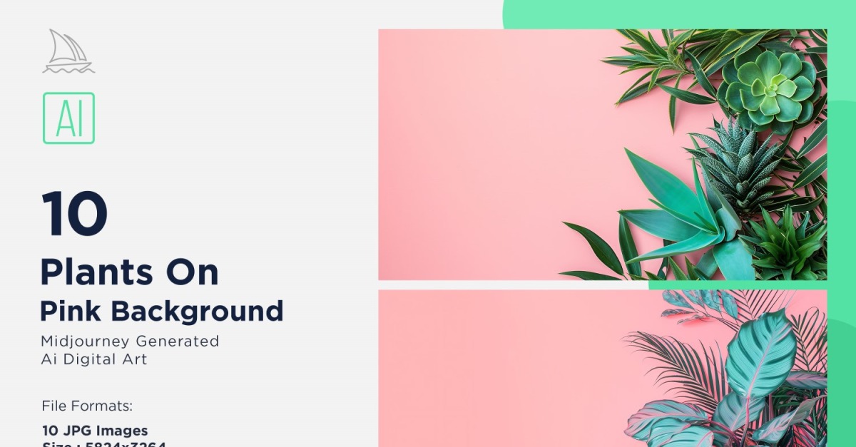 Plantas em fundo rosa 10 conjunto V-8