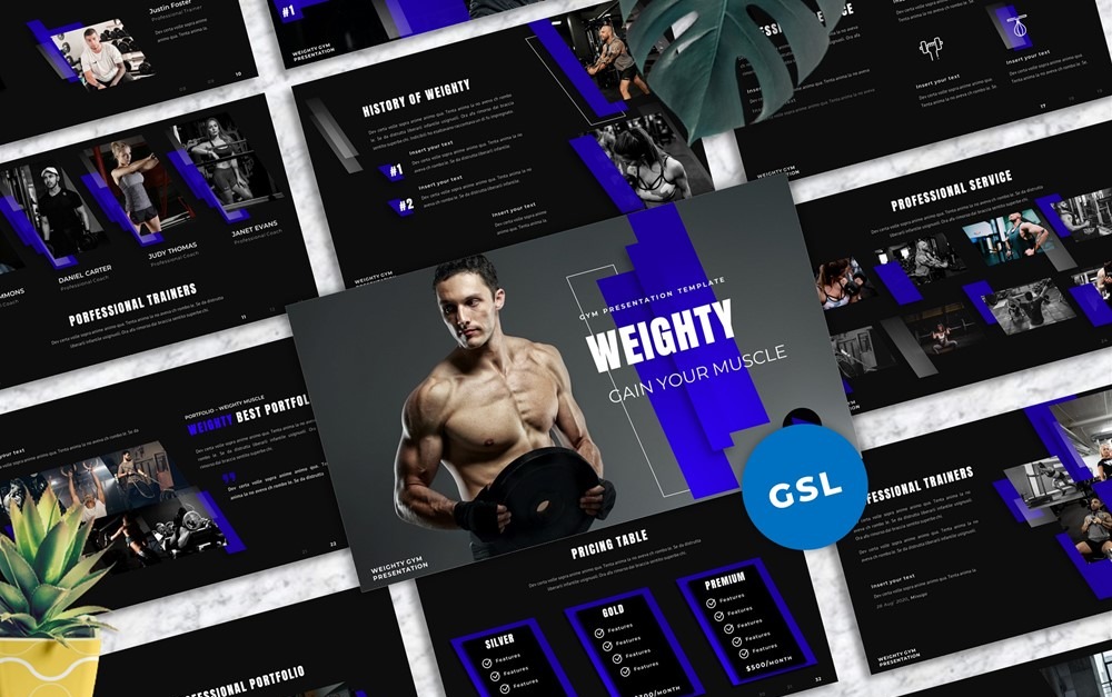 Apresentando o modelo de Googleslide do Weighty - Gym