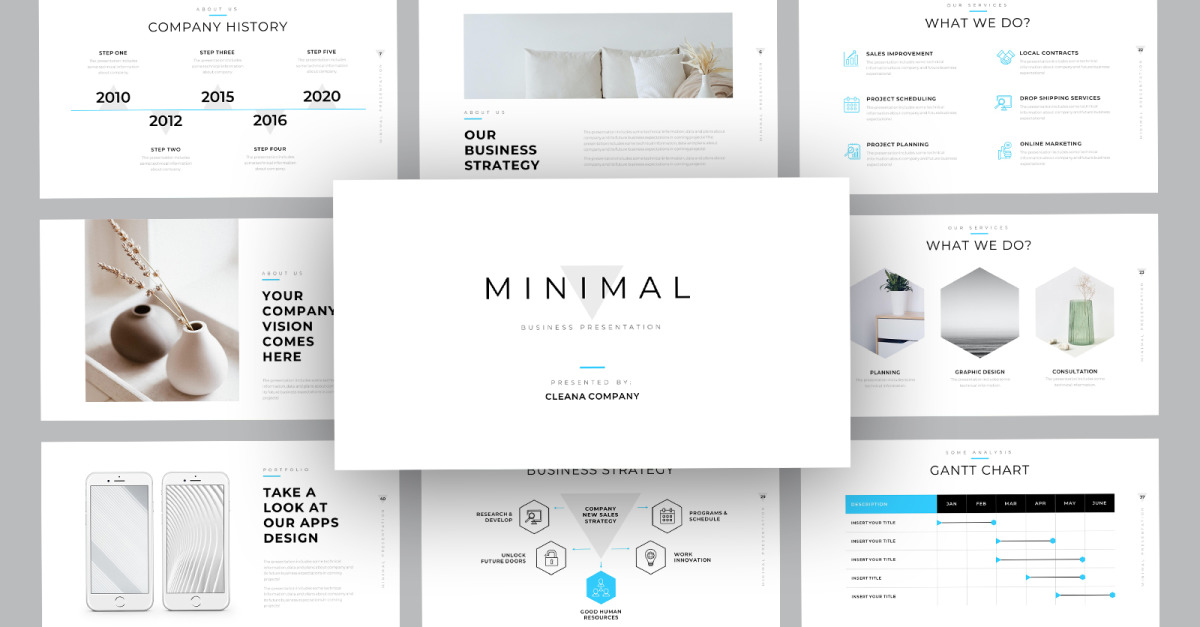 Cleana Minimal Business Modelo de slides do Google Modelo de apresentação plano, limpo, minimalista, elegante e flexível.