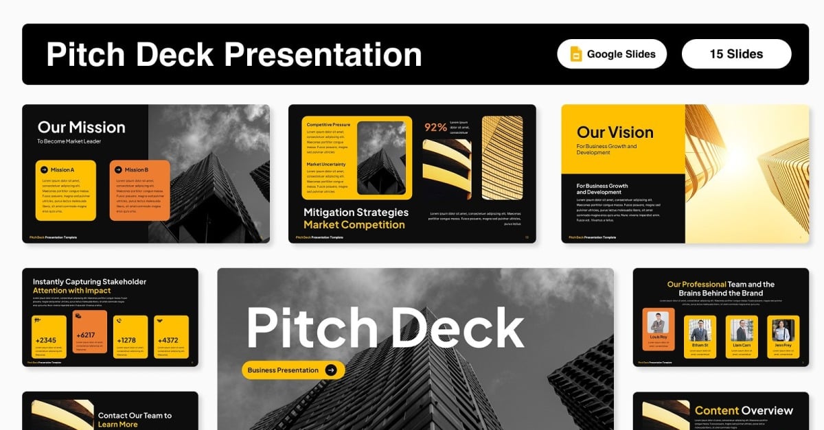 Apresentação em preto e amarelo no Google Slides - Modelo para slides preto e amarelo