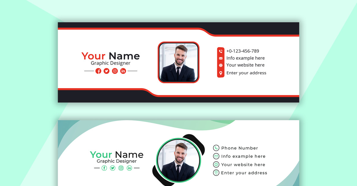 Pacote de design de modelo de assinatura de e-mail colorido pessoal