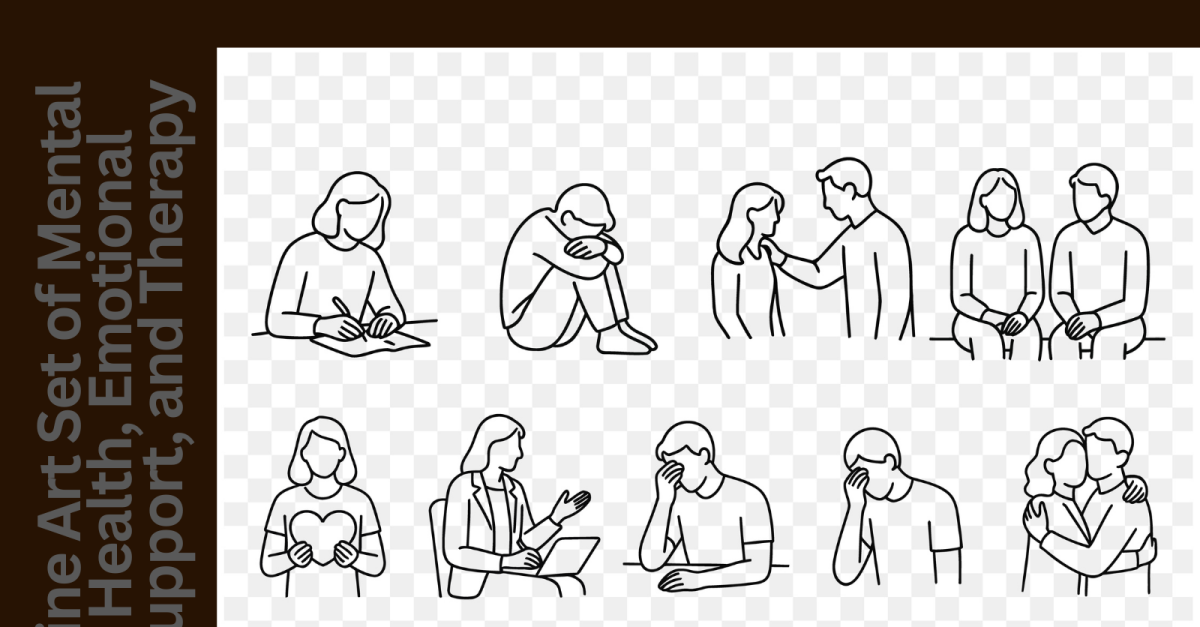Conjunto de arte minimalista de linha para saúde mental, apoio emocional e terapia