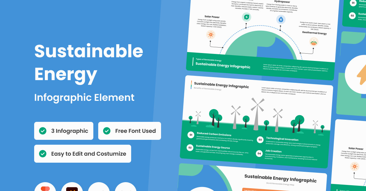 Eleve suas apresentações de energia renovável com o Sustainable Energy Infographic Template V2. Este modelo combina design elegante com visualização de dados abrangente, tornando informações complexas acessíveis e envolventes. Ideal para destacar a importância de práticas sustentáveis no setor de energia.
