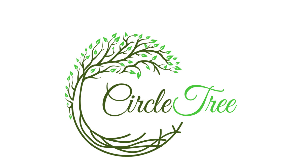 Design de logotipo de árvore e raiz de círculo de natureza de folha verde