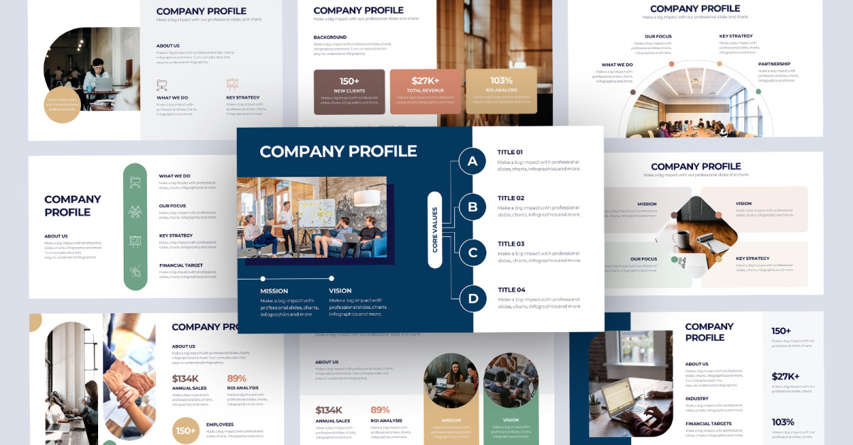 Modelo de PowerPoint de slides de perfil da empresa