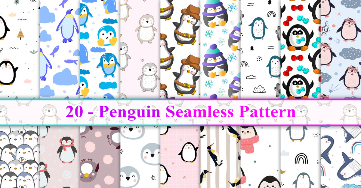 Padrão sem costura de pinguim, padrão de pinguim, papel digital de pinguim