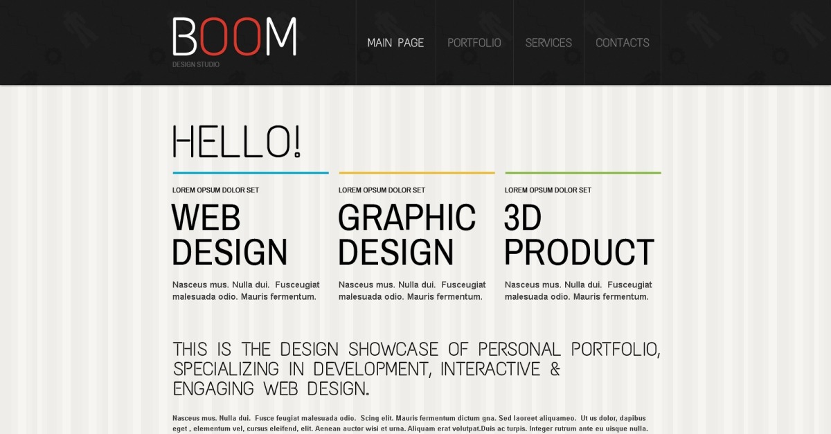 O tema é projetado de forma bastante criativa: é caracterizado pelo minimalismo em preto e branco e três diferentes seções de ornamentos no fundo. A originalidade do modelo é aprimorada com o widget integrado do Google Maps na área de contato: mostra a localização do seu estúdio de design e oferece suporte à promoção da sua marca na Internet.