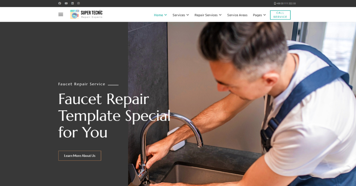 Com este tema, seus clientes podem encontrar rapidamente pessoal de serviço técnico e informações de serviço. Ele ajuda sua empresa a ter uma imagem profissional e confiável no mundo digital. Ele ajuda você a se destacar na indústria ao fortalecer sua presença digital. Fazer seu negócio crescer nunca foi tão fácil com nosso tema da web que fornece todas as ferramentas de que você precisa para fornecer o melhor serviço aos seus clientes. Renove a face digital da sua empresa, impressione seus clientes e fique um passo à frente da concorrência.