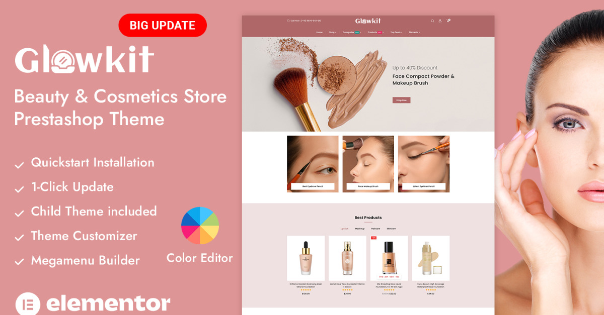 Glowkit - tema responsivo PrestaShop para loja de beleza