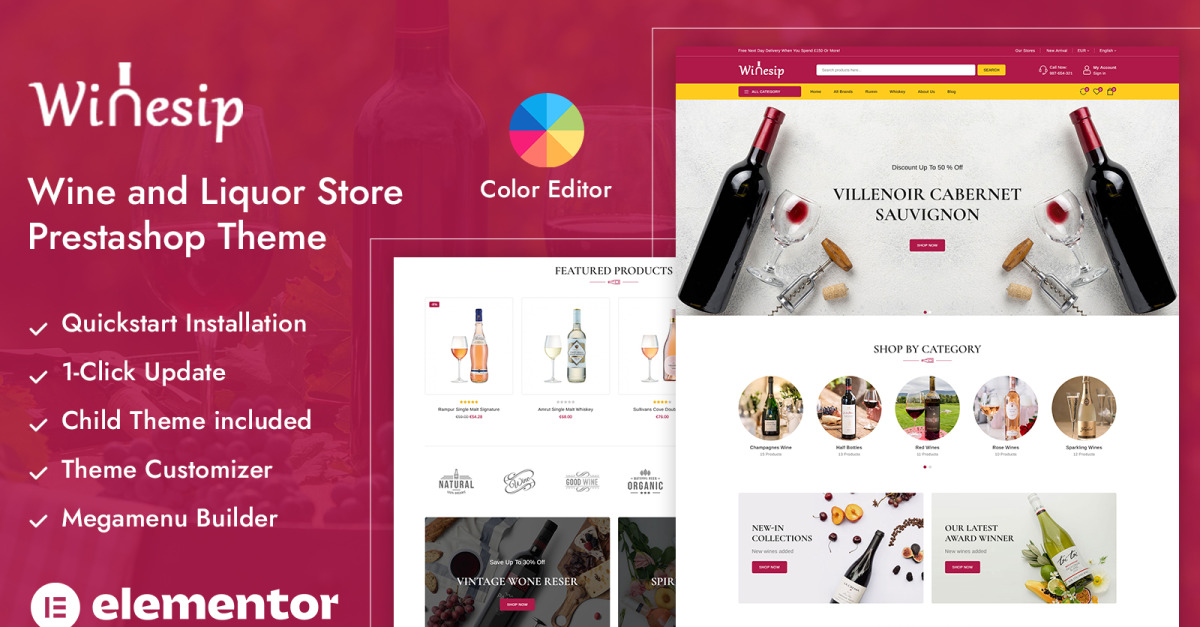 Winesip é um tema responsivo para PrestaShop, refinado e com design de bom gosto, desenvolvido para lojas de vinhos, destilados, cervejarias, vinícolas, bares e boutiques de bebidas gourmet . Apresenta um estilo visual elegante e sofisticado que destaca o caráter único e a exclusividade de vinhos, destilados e coleções de bebidas premium. Com layouts cuidadosamente elaborados, tons suaves e displays de produtos visualmente atraentes, o Winesip ajuda a criar um ambiente de compras sofisticado que reflete qualidade e requinte.