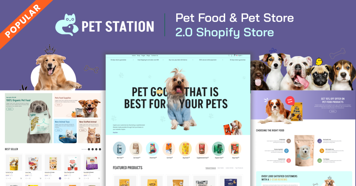 Pet Station - Site de comida para animais de estimação e loja de animais de estimação com tema Shopify 2.0