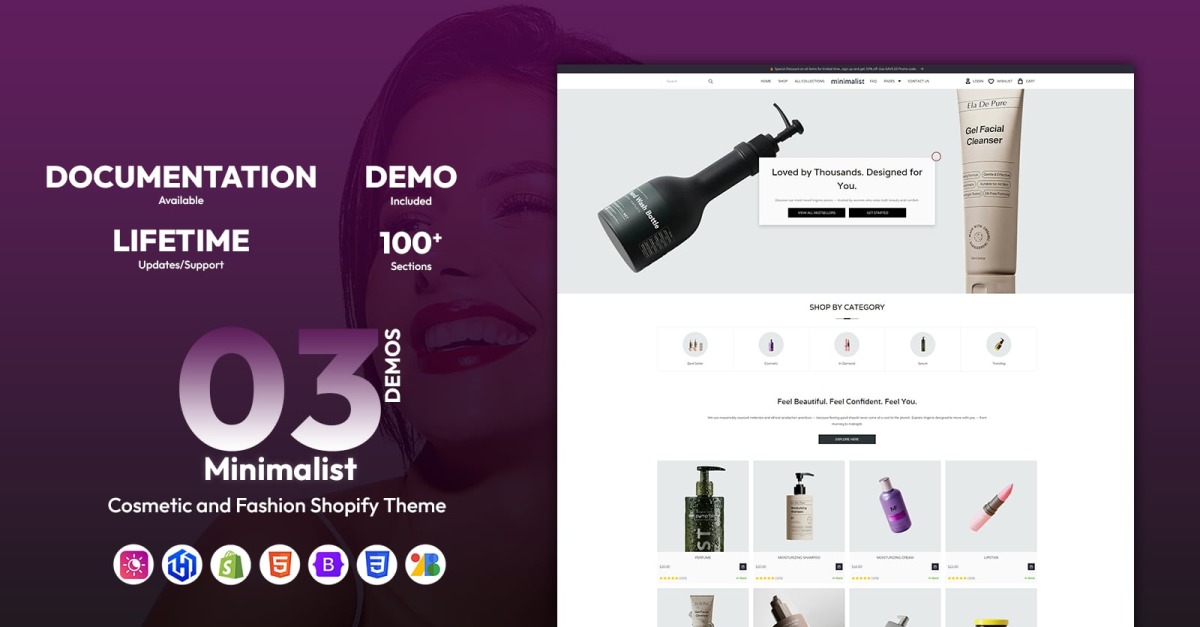 Minimalist é um tema Shopify de última geração, criado para lojas online modernas e de alta conversão. Projetado com elegância, velocidade e flexibilidade em mente, este tema é perfeito para marcas de cosméticos, lojas de beleza, boutiques, lojas de lingerie e pijamas, marcas de moda e sites de e-commerce multifuncionais. Seja para lançar sua primeira loja ou atualizar uma marca em crescimento, o Minimalist oferece tudo o que você precisa para construir uma presença online premium sem precisar escrever uma única linha de código.