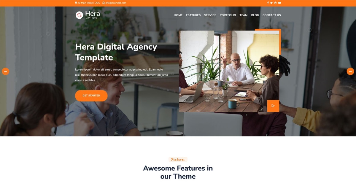 Hera é uma agência digital responsiva Tema WordPress de uma página Design exclusivo e limpo. Faz sites corporativos/comerciais, agências criativas e outros sites. Parece perfeito em todos os principais navegadores, todos os dispositivos. Basta pegar o melhor tema WordPress de sua escolha, editar o conteúdo, adicionar suas imagens e pronto!
