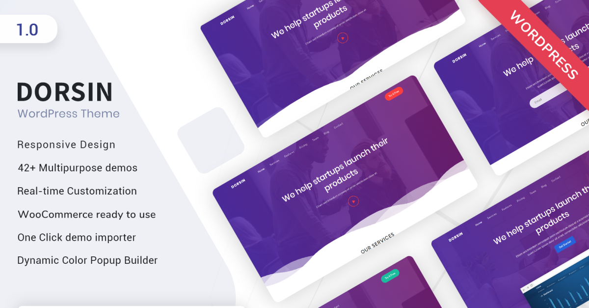 Dorsin é um modelo de página inicial Bootstrap 4 construído com WordPress e Elementor. É um excelente modelo WordPress para inicialização, negócios, aplicativos, saas, marketing, agência, negócios, etc. É totalmente responsivo e construído com bootstrap e WordPress. Os usuários vão adorar o seu site porque oferece uma experiência de usuário única (UX), design limpo, moderno e bonito. Você será capaz de personalizá-lo facilmente para suas necessidades.