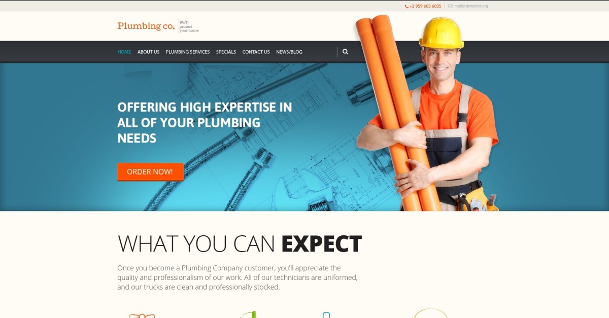 Este é o tema Plumbing Company WP com Cherry Framework