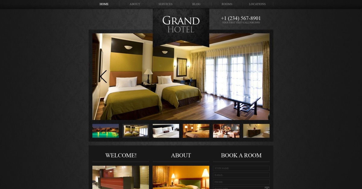 Este tema WordPress gratuito para hotéis possui várias páginas e blocos específicos para sites de hotéis. Possui os seguintes recursos: Painel Administrativo, Blog, JQuery, HTML mais JS. É compatível com WordPress ✅3.2.x - 3.4.x,3.5.x e possui um construtor Cherry Framework 3 fácil de usar. O estilo de design é retrô.