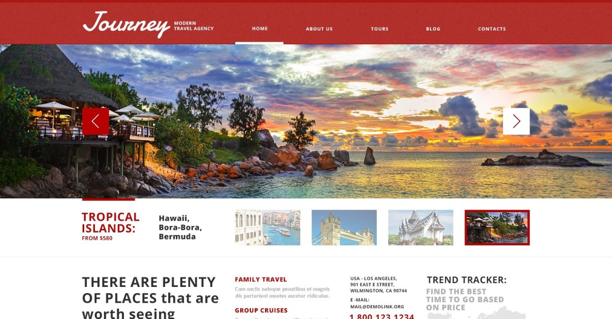 Baixe este tema pitoresco gratuito para agências de viagens para WordPress com um clique. Graças ao seu design específico de nicho, será uma ótima opção para sites de viagens, vocações e viagens. ⏩ WordPress 3.0 e superior ⏩ várias páginas ⏩ exemplos de imagens e conteúdo.