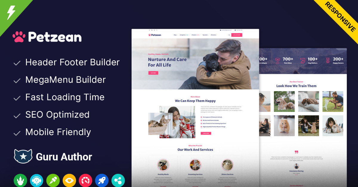 Petzean é um tema WordPress cuidadosamente projetado, desenvolvido especialmente para pet shops, clínicas veterinárias, salões de beleza, abrigos de animais e todos os tipos de serviços de cuidados com animais. Com uma estética acolhedora e amigável e um layout limpo, o Petzean oferece uma presença digital profissional e acessível para conectar-se com amantes de animais e clientes.