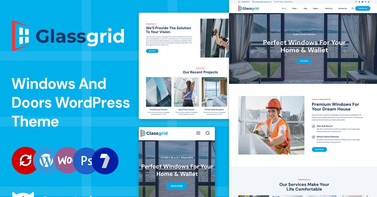 Glassgrid - Windows, Glasses & Doors service wordPress theme é um modelo versátil e bem projetado, criado especificamente para empresas que oferecem serviços de manutenção, reparo e instalação de janelas, vidros e portas. Este tema, projetado com o poderoso construtor de sites Elementor, permite fácil personalização e gera layouts da web interessantes e atraentes.