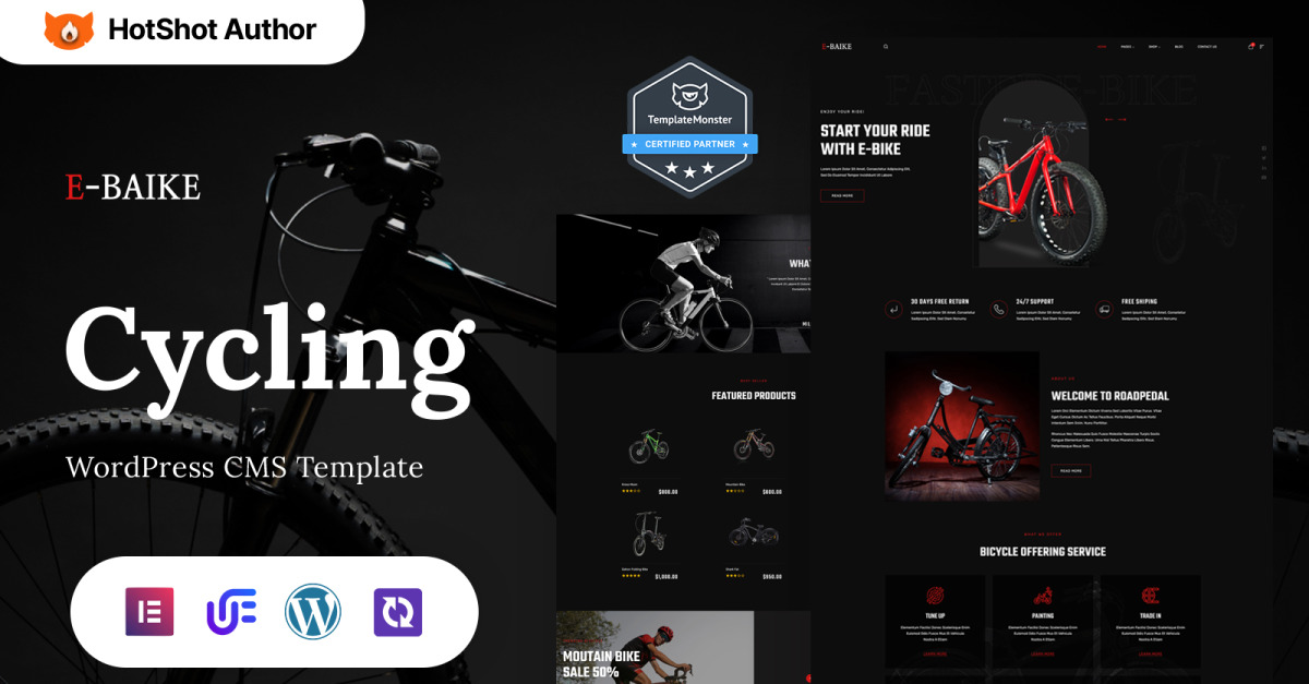 E-Baike - Tema WordPress Elementor para ciclismo e loja de bicicletas