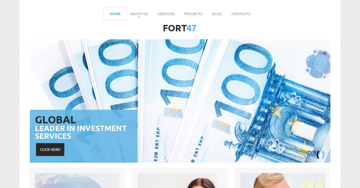 Este é o design WordPress da Investment Corporation com Cherry Framework