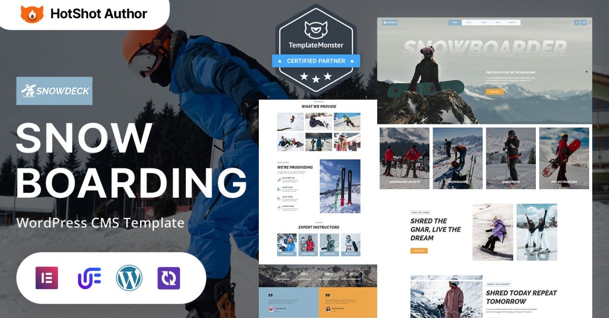 Snowdeck - Escola de snowboard e tema WordPress de aventura Elementor