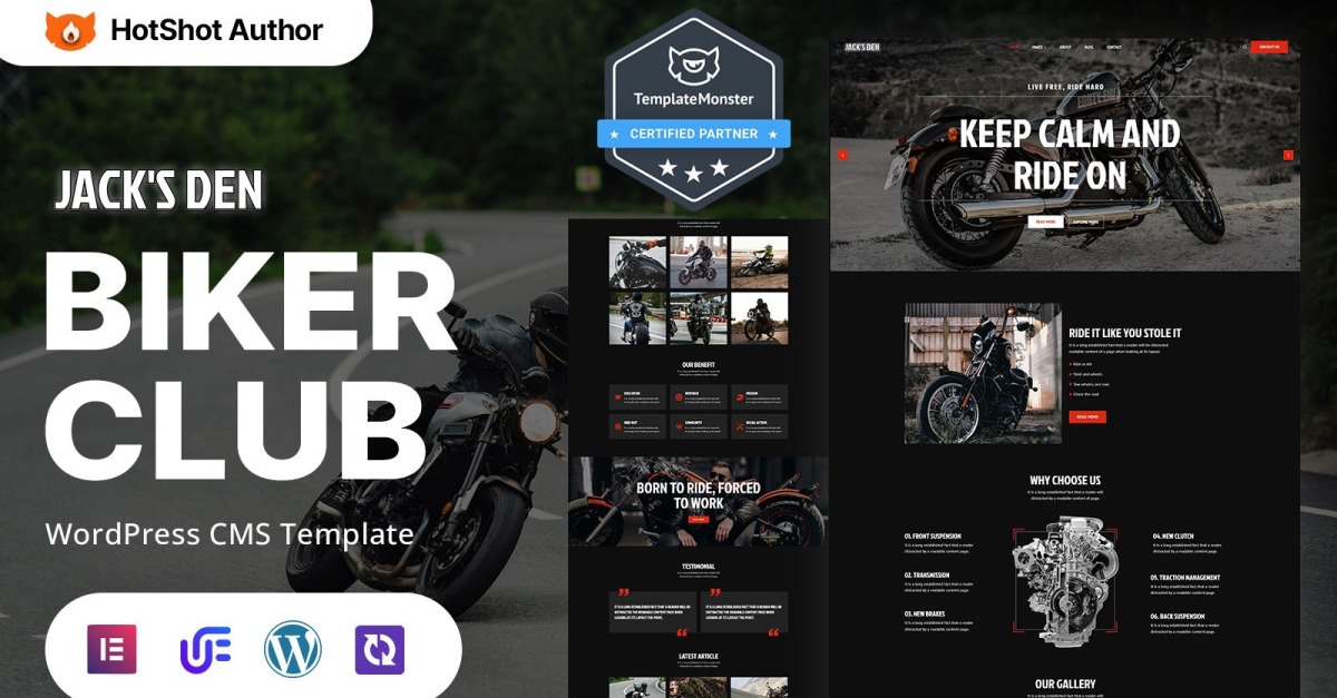 O modelo Biker Club WordPress foi criado para entusiastas de motocicletas, motociclistas e comunidades de motociclistas que estão prontos para levar sua paixão para o mundo online. Quer você esteja administrando um clube de motociclistas local, vendendo equipamentos de motociclista ou compartilhando histórias e eventos emocionantes com seus colegas motociclistas, este modelo oferece tudo o que você precisa para fazer uma declaração poderosa. Feito sob medida especificamente para o estilo de vida motociclista, ele reflete a liberdade, a adrenalina e a fraternidade que os motociclistas compartilham, ao mesmo tempo em que fornece uma plataforma elegante, moderna e fácil de usar para construir sua presença online.