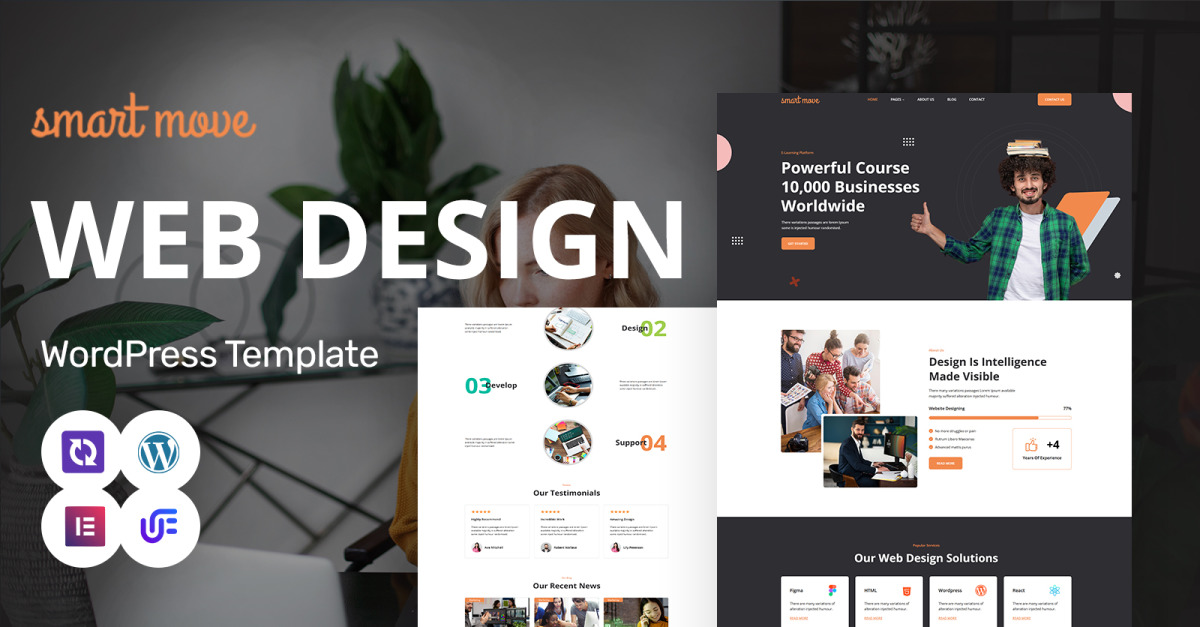 Você está procurando um template WordPress elegante e de alto desempenho que mostre seus serviços de web design, agência digital ou portfólio criativo com um visual profissional e envolvente? Nosso Smart Move Web Design WordPress Template é a solução perfeita!