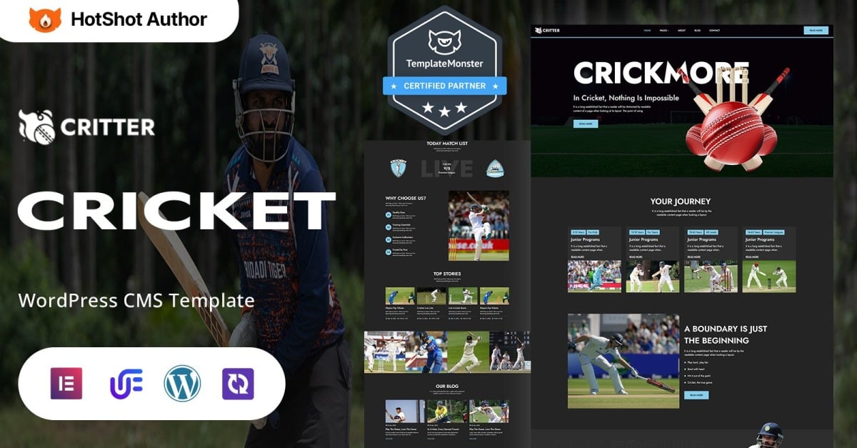 Critter - Tema WordPress Elementor para Cricket Academy e Torneio