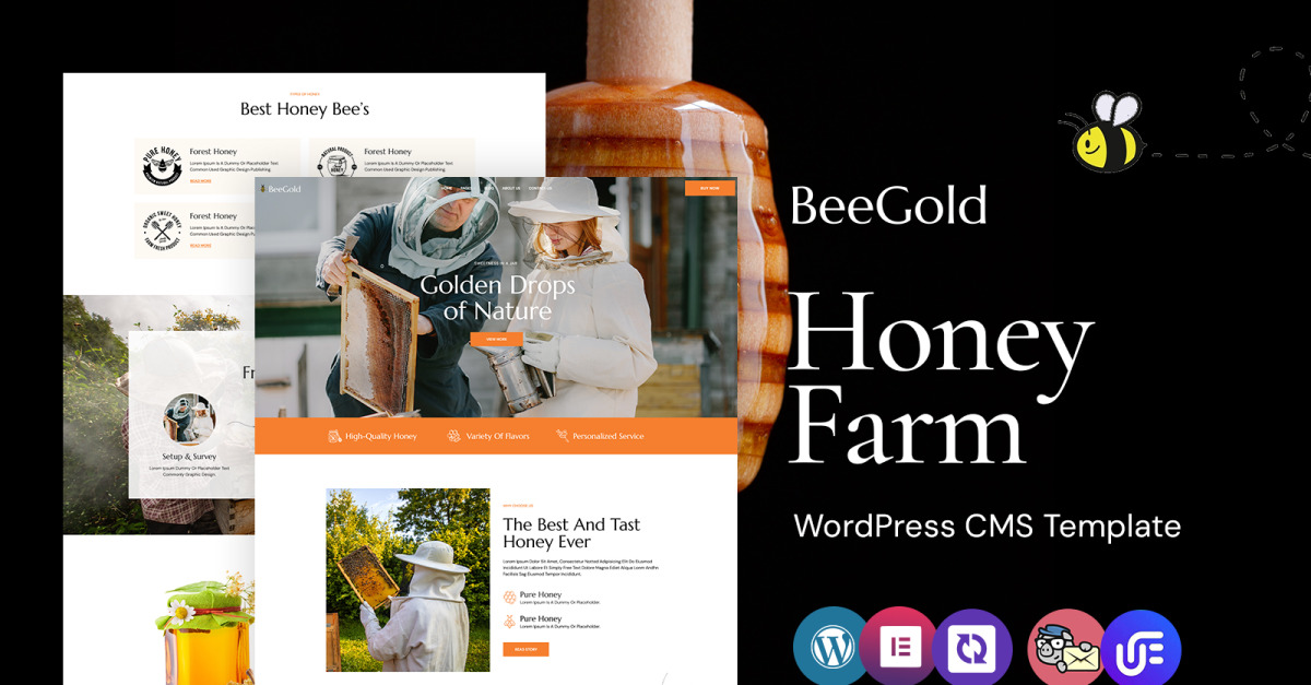 Beegold - Tema WordPress Elementor para Fazenda de Abelhas e Mel