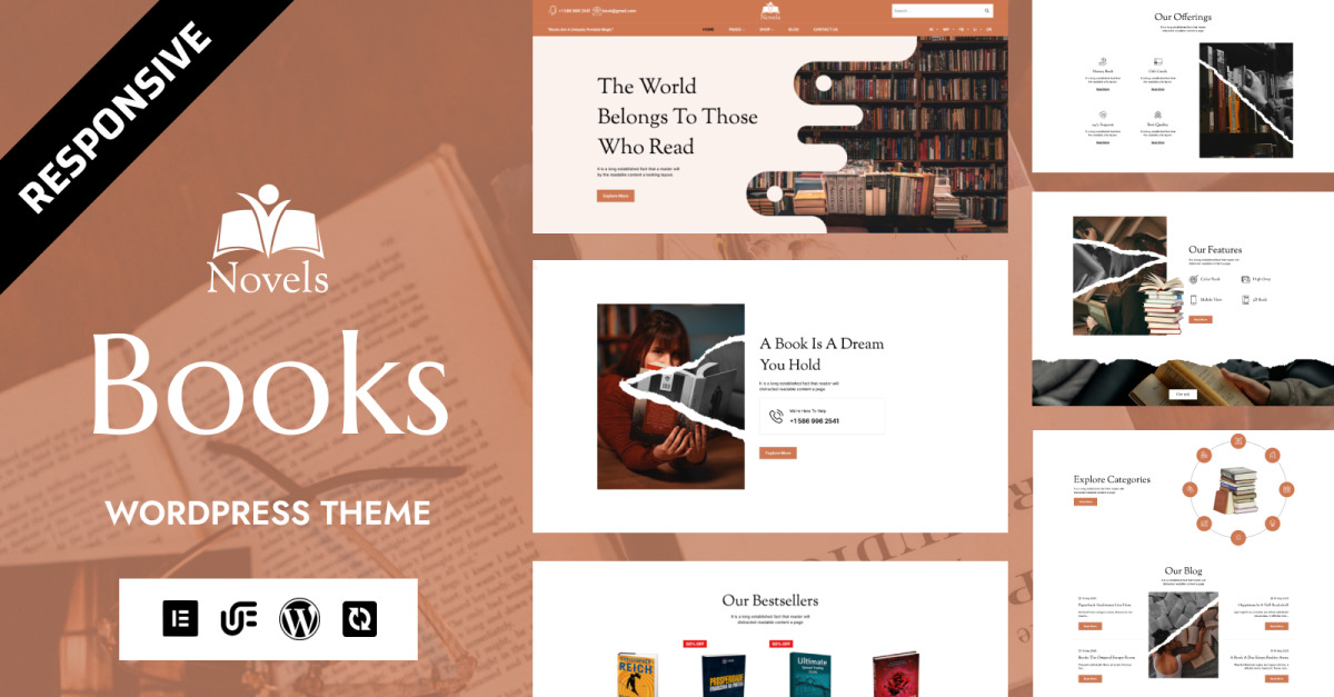 Dê vida às suas histórias. Novels Books é um modelo WordPress sofisticado e altamente personalizável, criado especificamente para quem vende, expõe ou celebra livros — autores, editoras, livrarias independentes, livrarias online, blogueiros literários e bibliotecas. Ele combina uma tipografia elegante com opções de layout limpas para que cada capa, sinopse e resenha receba a atenção que merece. Projetado para converter navegadores em leitores, este modelo coloca seu catálogo em destaque, mantendo um visual editorial elegante, confiável e moderno.