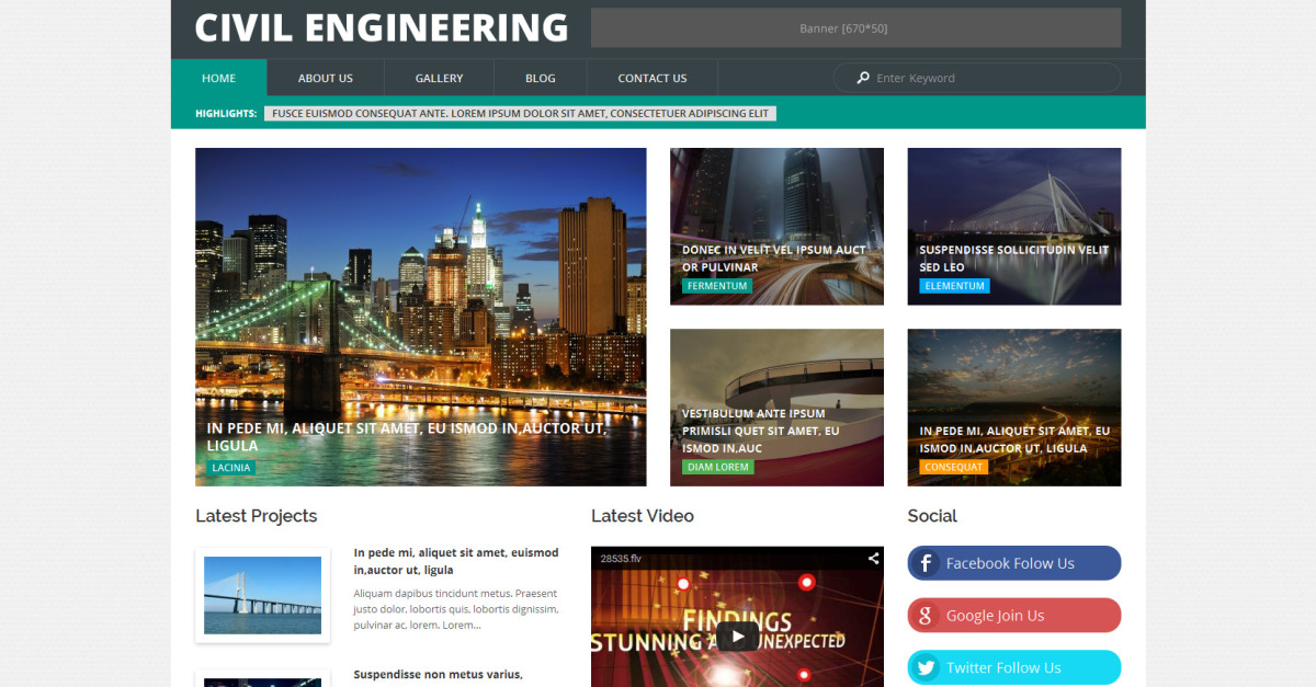Este é o template WordPress de Engenharia Urbana com Portfólio