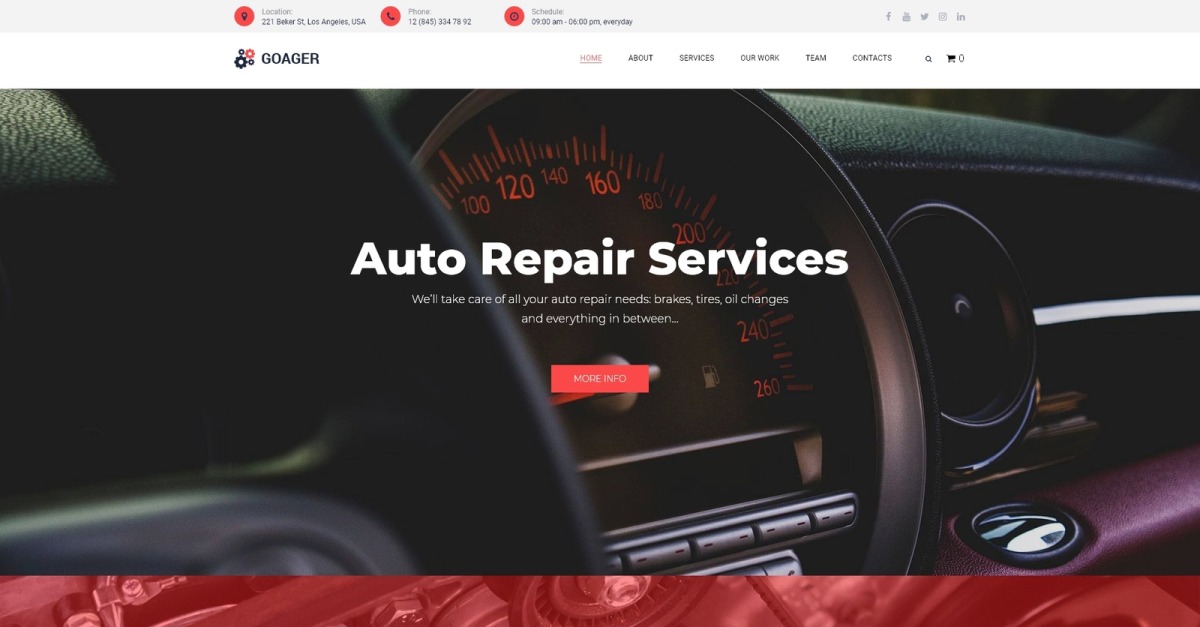 Goager - Tema moderno do WordPress Elementor para comércio eletrônico de conserto de automóveis