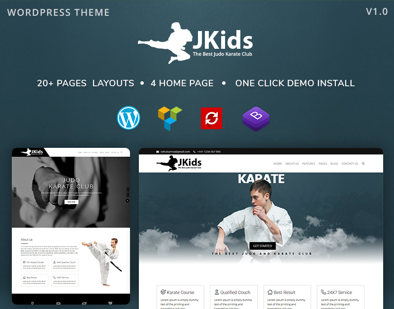 Karate WordPress Theme tem um design moderno e funcional criado para a indústria do esporte, especialmente para artes marciais/judô de karatê.