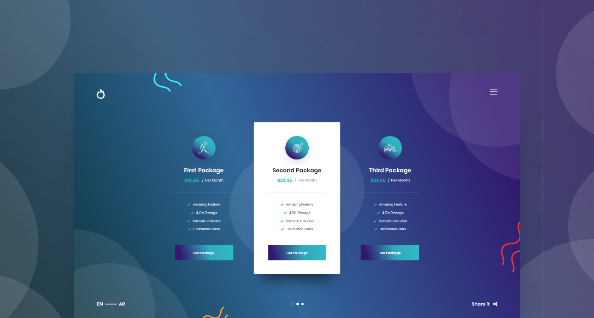 Página de destino do cabeçalho do herói da tabela de preços Adobe XD Template Vol 123
