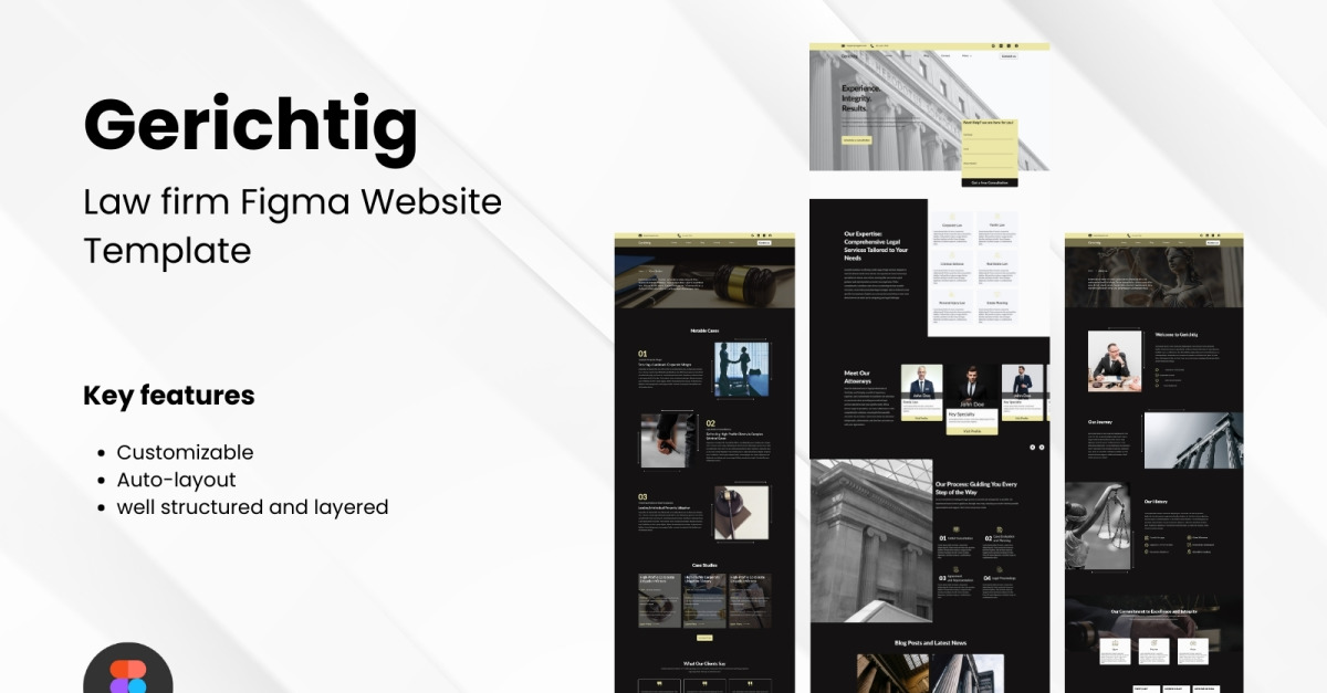 Pacote de modelos de interface de usuário para sites de suporte jurídico e escritórios de advocacia – 15 designs premium R$ 110 Descarregar