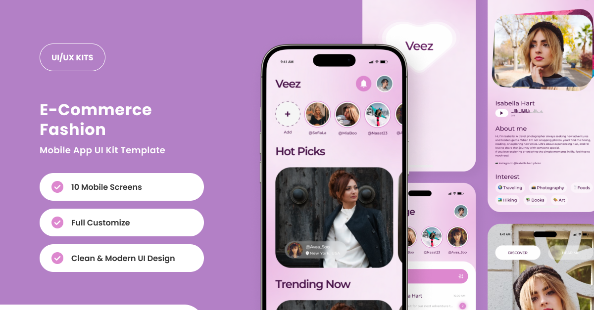 Veez - Interface de usuário de aplicativo de namoro social lúdica e envolvente