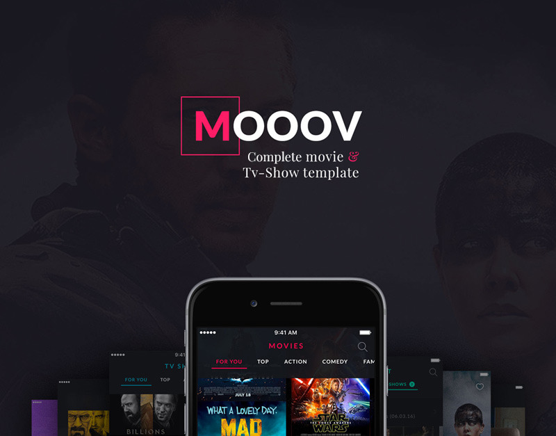 Elementos da interface do usuário do modelo móvel MOOOV Movie & Tvshow
