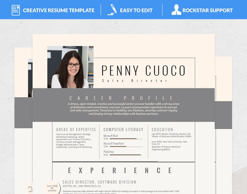 Download instantly this beautiful, professional resume template that you can customize to give it your personal, unique touch - change colors, fonts, section placements etc. You can delete, duplicate ore move anything within the template.