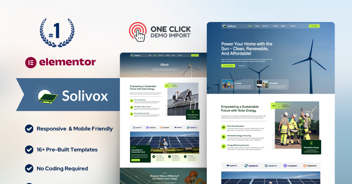 Solivox – набор шаблонов Wordpress Elementor для солнечной и возобновляемой энергии