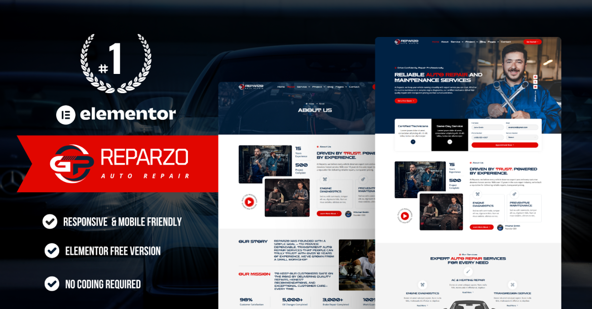 Reparzo – набор шаблонов WordPress Elementor для авторемонта