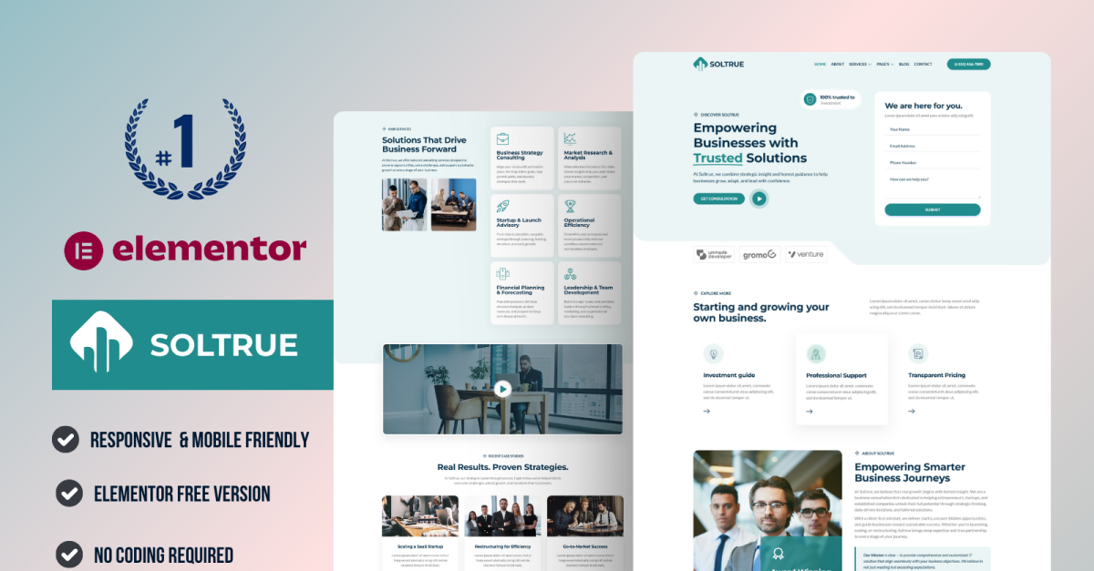 Soltrue – набор шаблонов WordPress Elementor для бизнес-консультаций и бизнес-тренеров