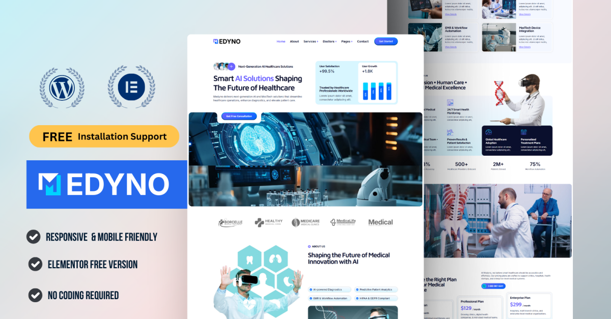 Medino — набор шаблонов Elementor для искусственного интеллекта в сфере здравоохранения и медицинских технологий