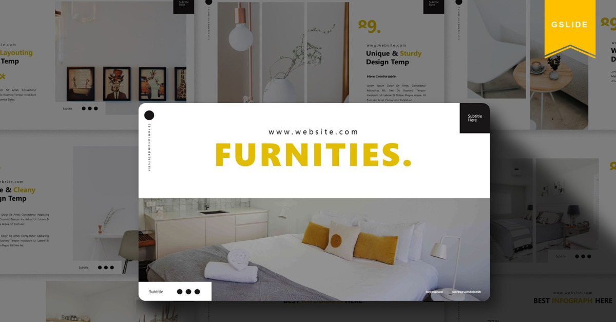 Это **Мебель | Шаблон Google Slides** – получите его прямо сейчас! Отличный шаблон Google Slides для всех деловых и личных нужд.